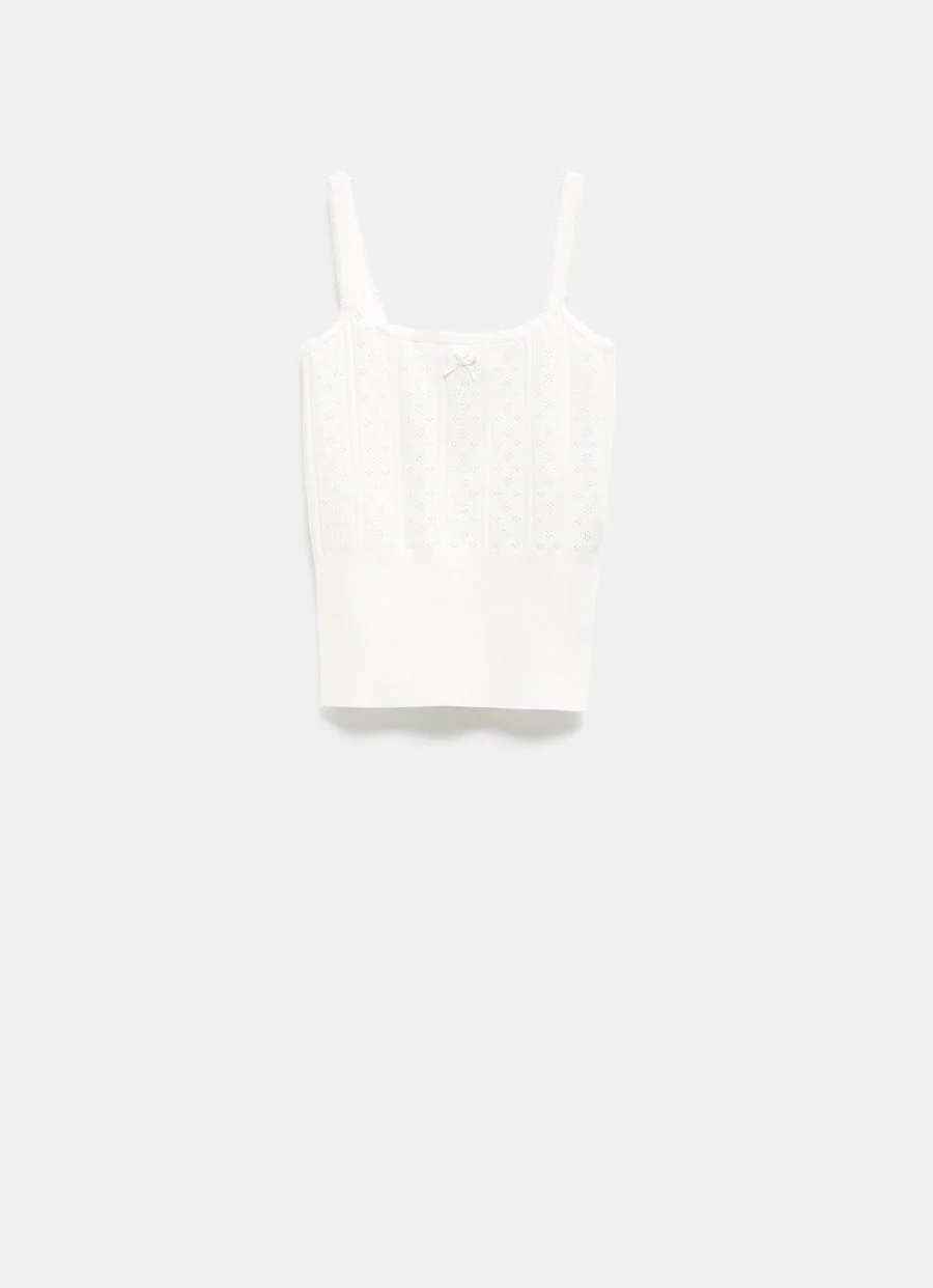 Top de JW Anderson en punto calado de viscosa técnica. Con tirantes finos y detalle de lazo. Corte ajustado. Talla normal, escoge tu talla habitual. Tallaje estándar para mujer.
