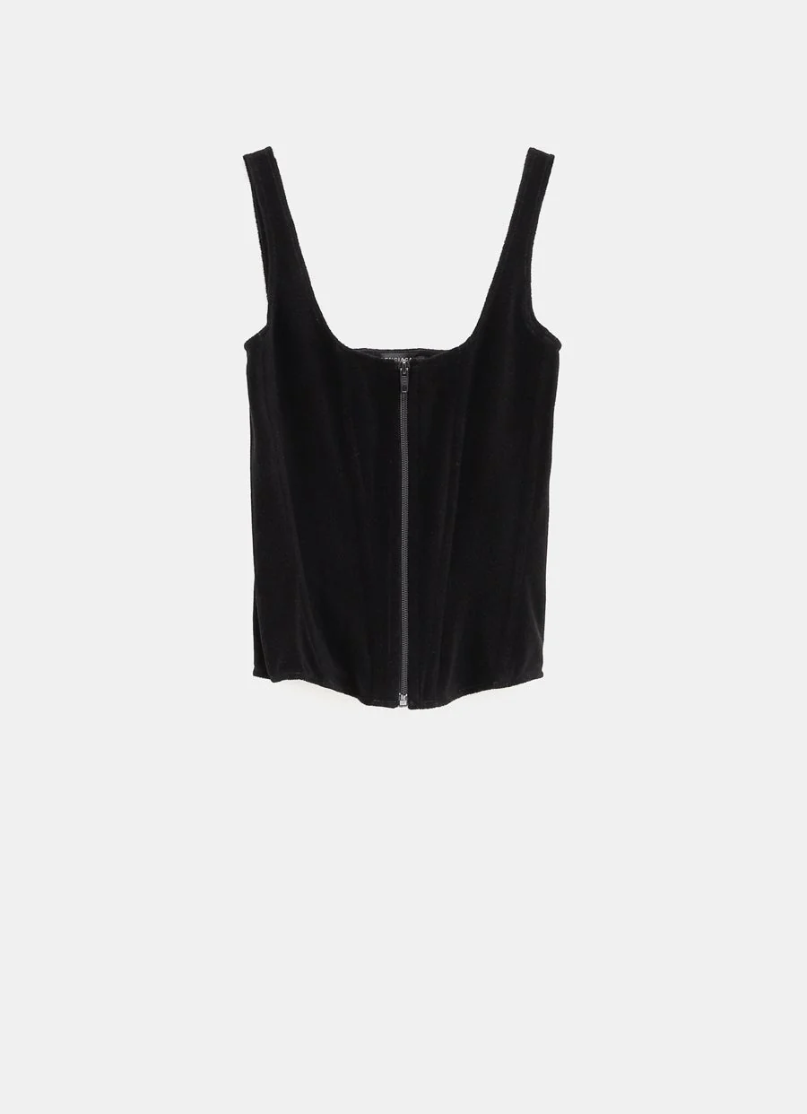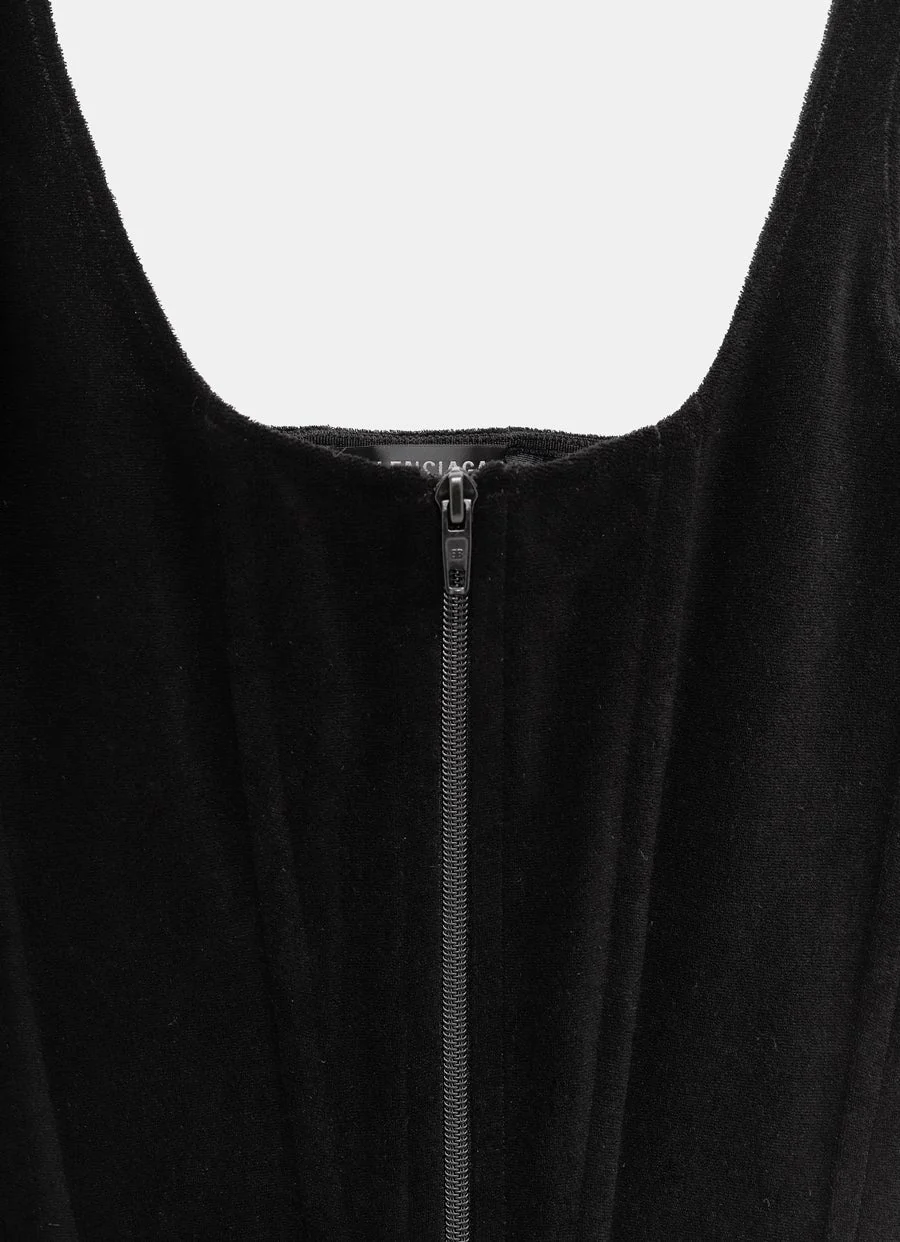Top de Balenciaga estilo corset en tejido de terciopelo, con cierre frontal con cremallera, parte delantera y trasera con ballenas, escote redondo y tirantes. Hecho en Italia. Corte Slim. Talla normal, elige tu talla habitual. Tallaje UE.