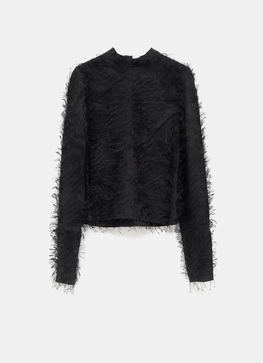 Top de Courrèges en tejido con textura efecto pelo, con manga larga, cuello de banda, cierre posterior con cremallera y corte ajustado. Hecho en Italia. Talla normal, escoge tu talla habitual. Tallaje francés.