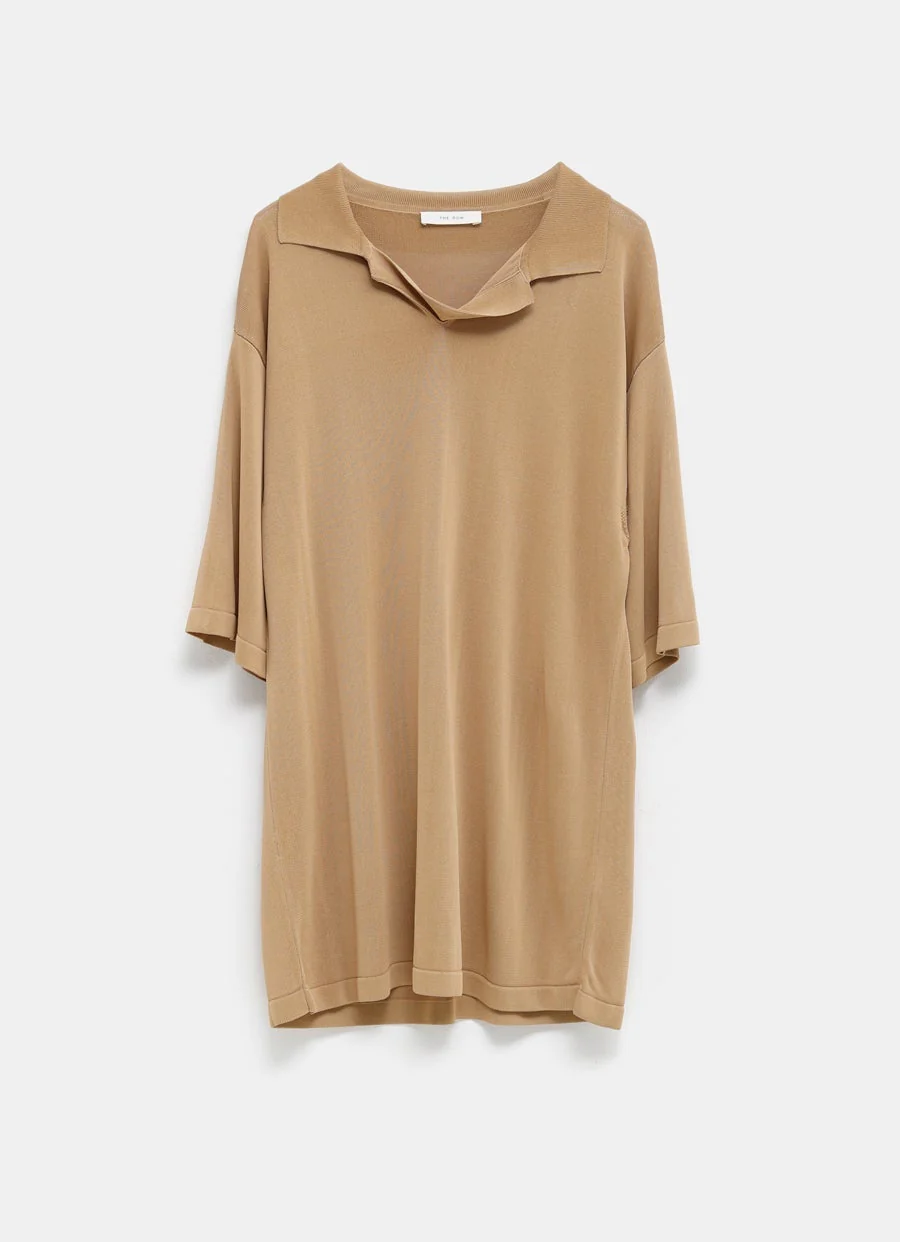 Top de The Row con silueta cuadrada de manga corta de viscosa mate fluida con escote en V tipo polo y hombro caído. Hecho en Italia. Talla normal, elige tu talla habitual.