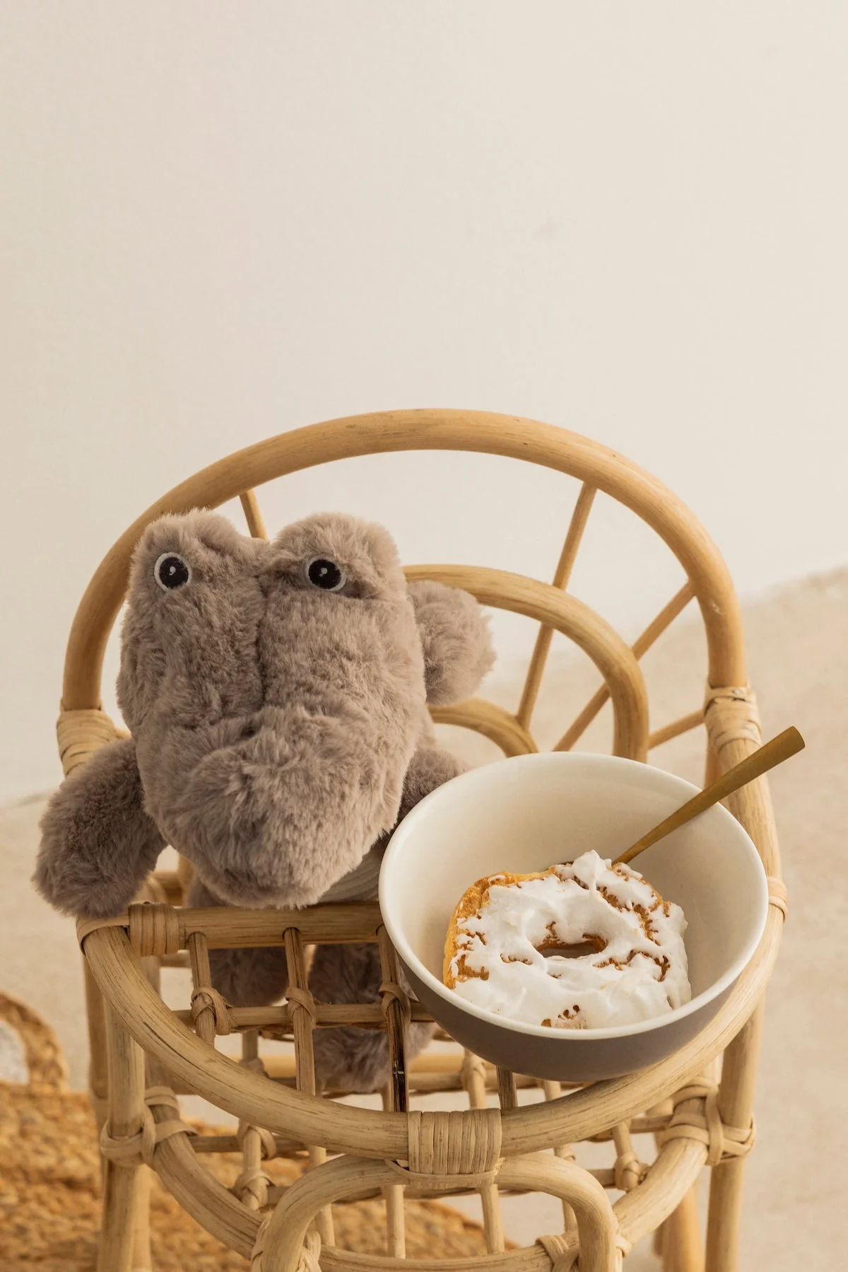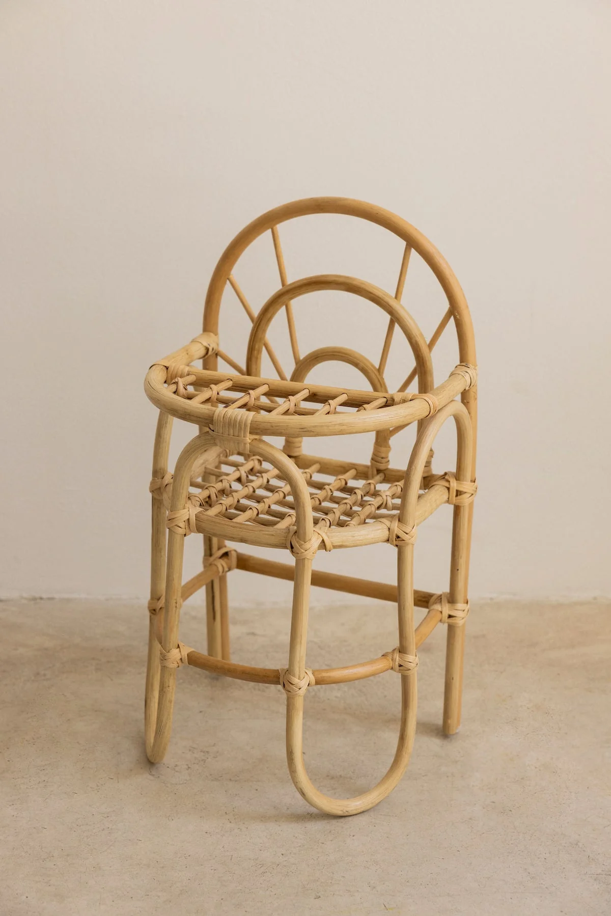 Esta trona para mu帽ecas combinar谩 bien con la cunita baja de mimbre para mu帽ecos.