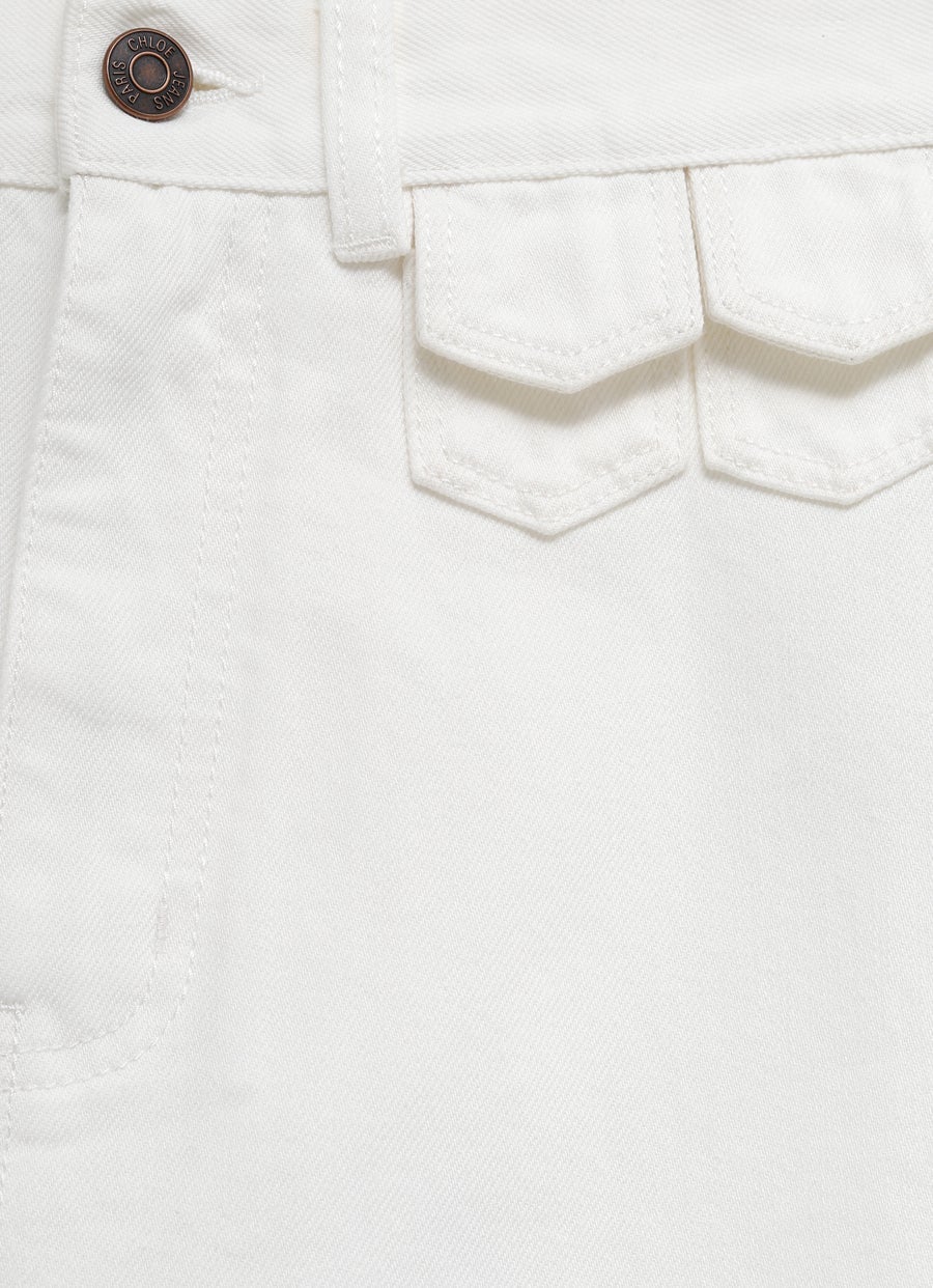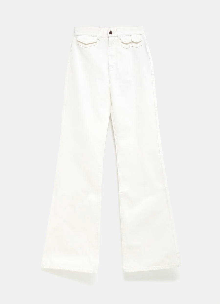 Vaqueros acampanados de Chloé de talle alto de tejido vaquero de algodón orgánico. Mini bolsillos con solapa en la cintura, cierre de botones y cremallera, bolsillos en la parte trasera, trabillas, y parche con logo. Hecho en Italia. Talla normal, elige tu talla habitual. Tallaje francés de mujer.