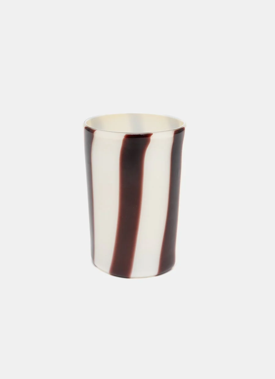 Vaso de cristal de Murano de Cristaseya. Soplado a mano en una pequeña fábrica familiar de Murano, el vaso tiene una base opaca con líneas verticales a color. Soplado a mano de forma tradicional, cada pieza es única y original. Hecho en Italia. Dimensiones: 10,5 x 8,5 cm.