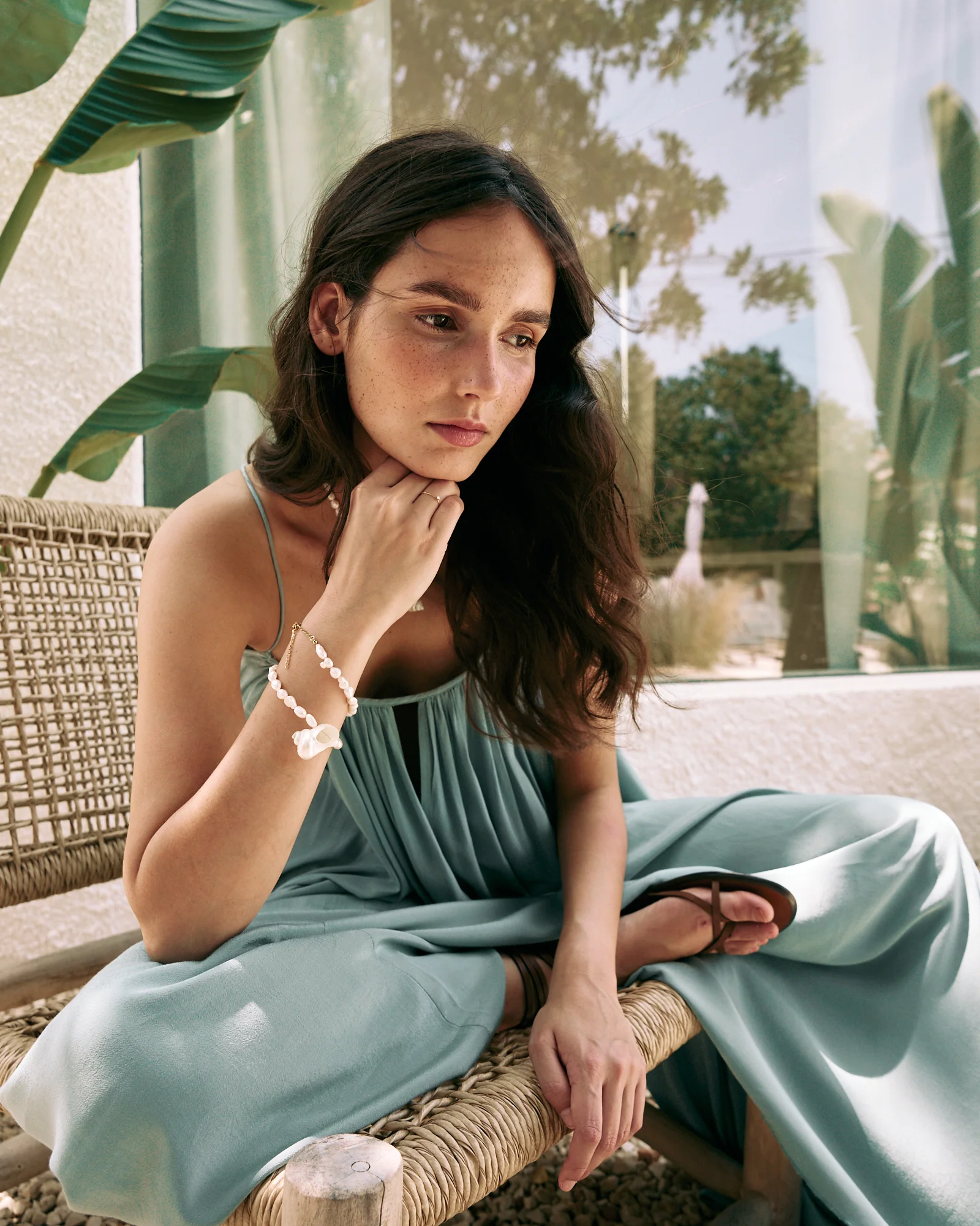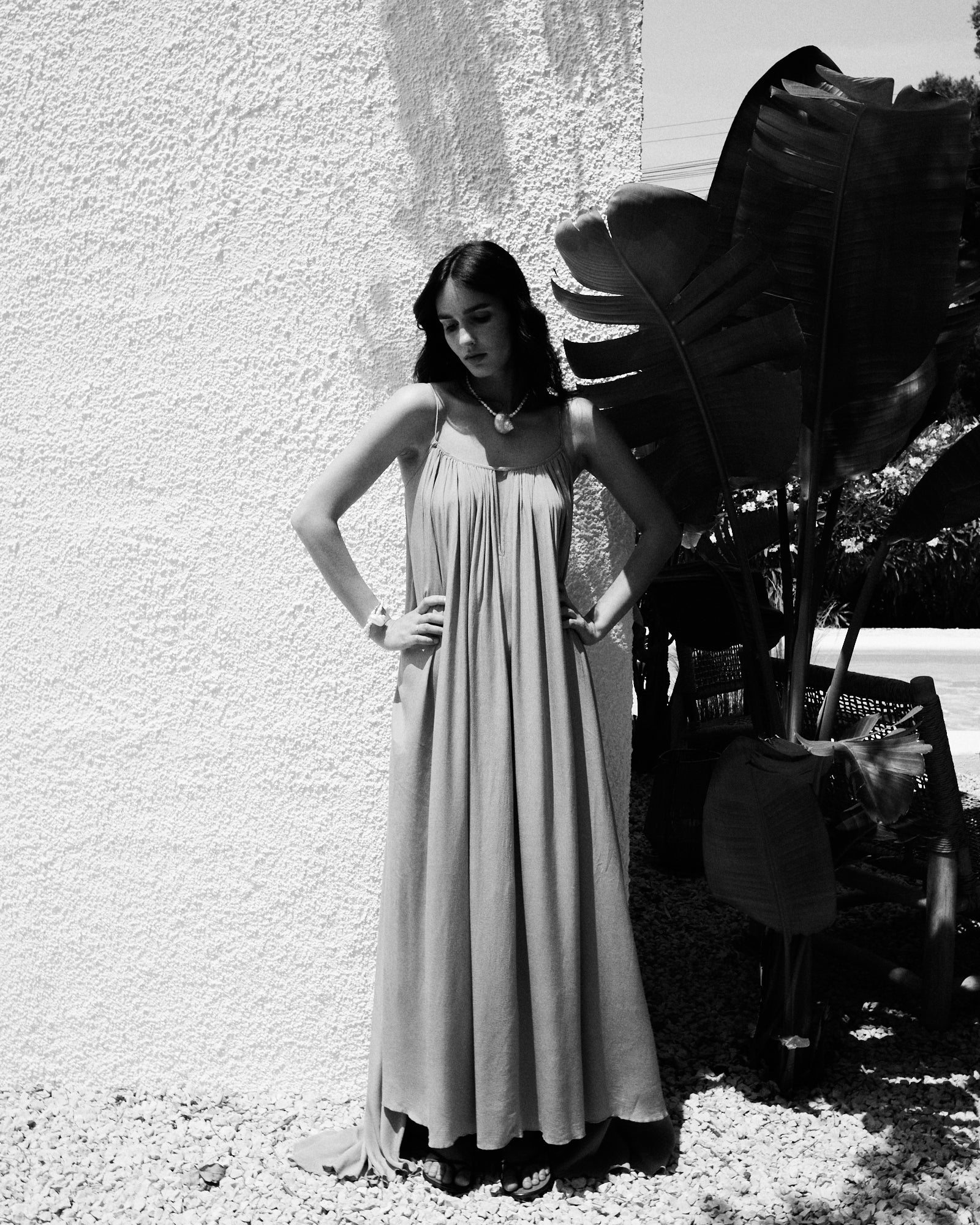 Los frunces estratégicos realzan la figura con sutileza, mientras que el profundo escote en la espalda aporta un toque sensual y elegante. Perfecto para eventos junto al mar, puestas de sol o celebraciones especiales donde el estilo y la ligereza van de la mano.