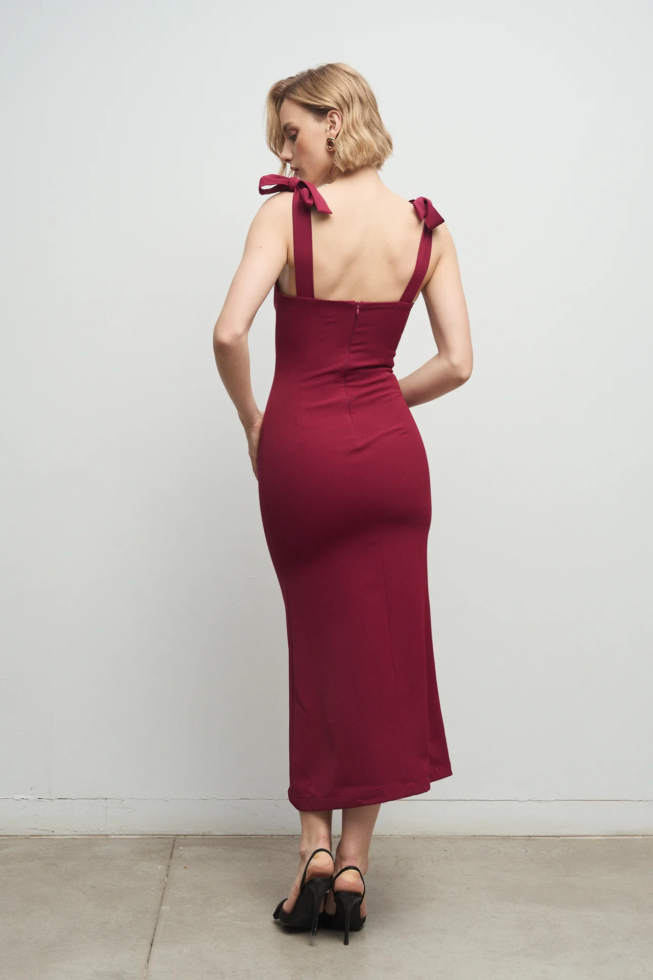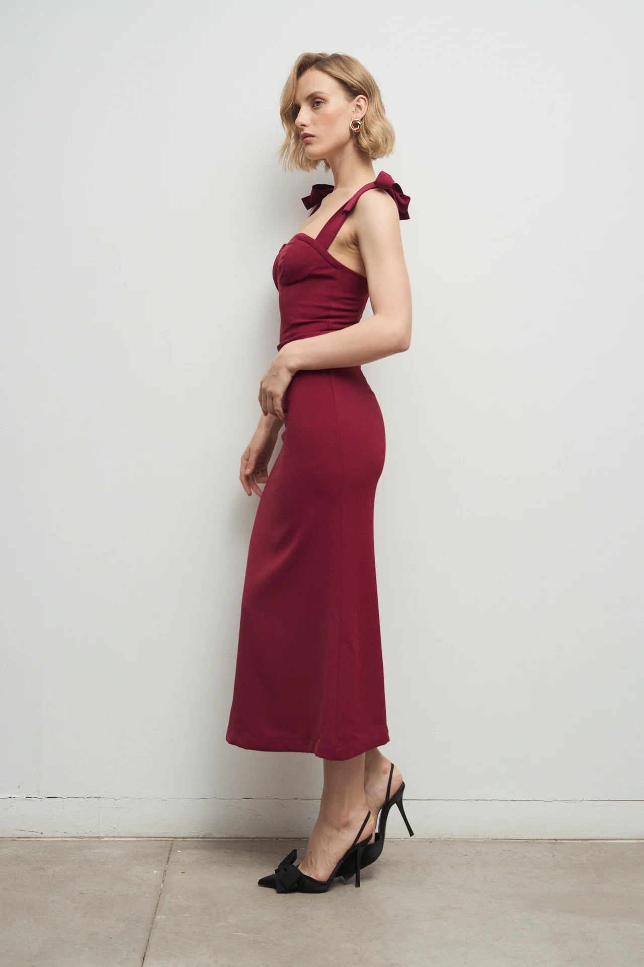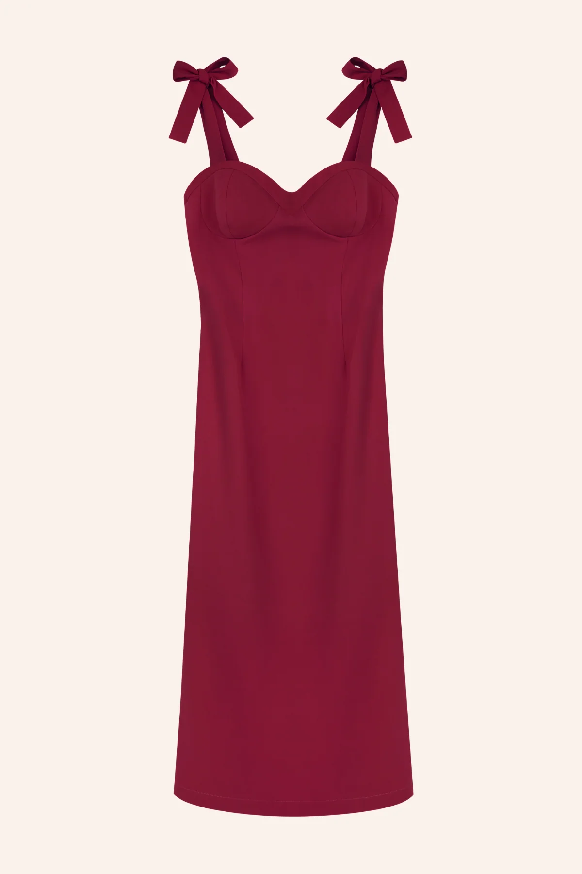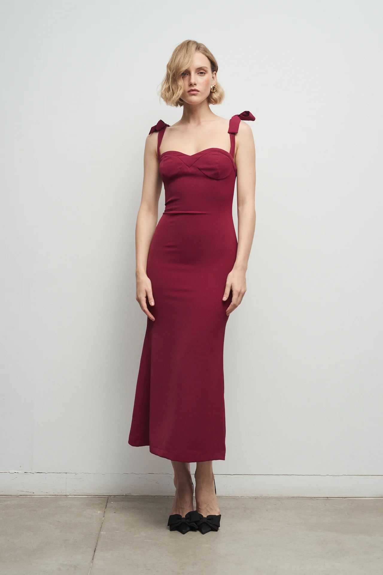 Dise帽o de tirantes que se anudan en los hombros a tu gusto y silueta tipo bustier. Inspirado en nuestro bestseller: el vestido Julia.