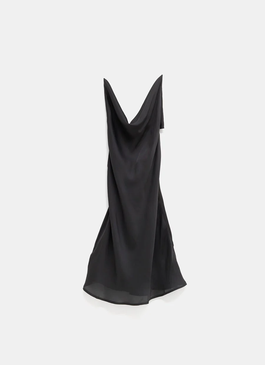 Vestido mini de Y/Project en satén con tirantes elásticos e invisibles y largo por mitad del muslo. Tallaje francés.