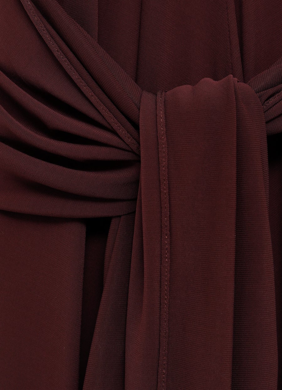 Vestido largo de Alaïa en jersey suave. Con falda fluida, cuello halter, diseño cruzado con espalda descubierta y cinturón anudado. Corte fluido. Hecho en Italia. Tallaje normal, elige tu talla habitual. Tallaje francés.