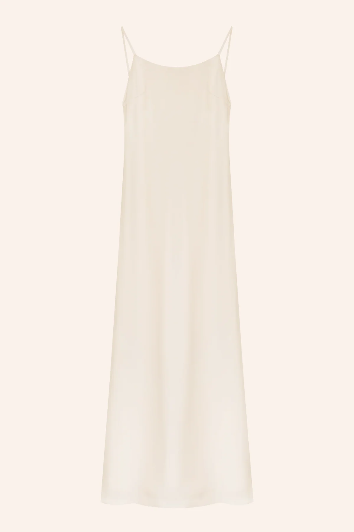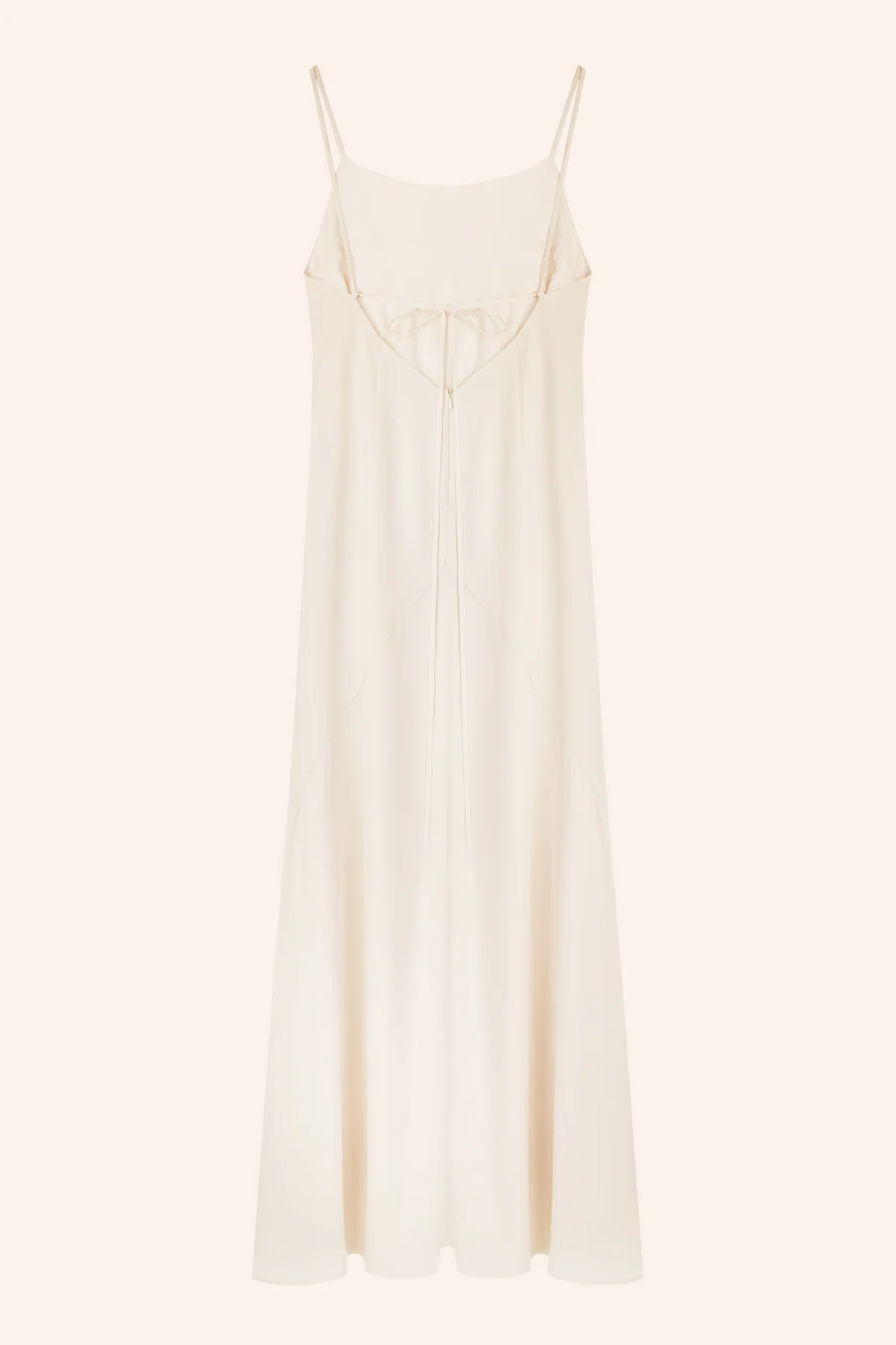 Este vestido de novia tipo lencero en sat茅n beige vintage es la opci贸n ideal para novias que buscan un look sofisticado, sensual y atemporal. Su dise帽o elegante presenta un escote en pico en la espalda, que aporta un toque de delicadeza y modernidad, mientras que el sat茅n resalta la silueta con un acabado suave y fluido.