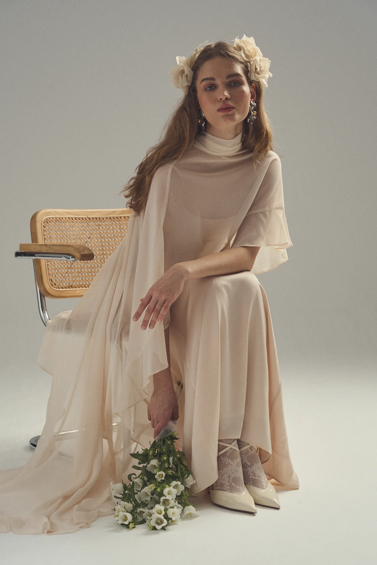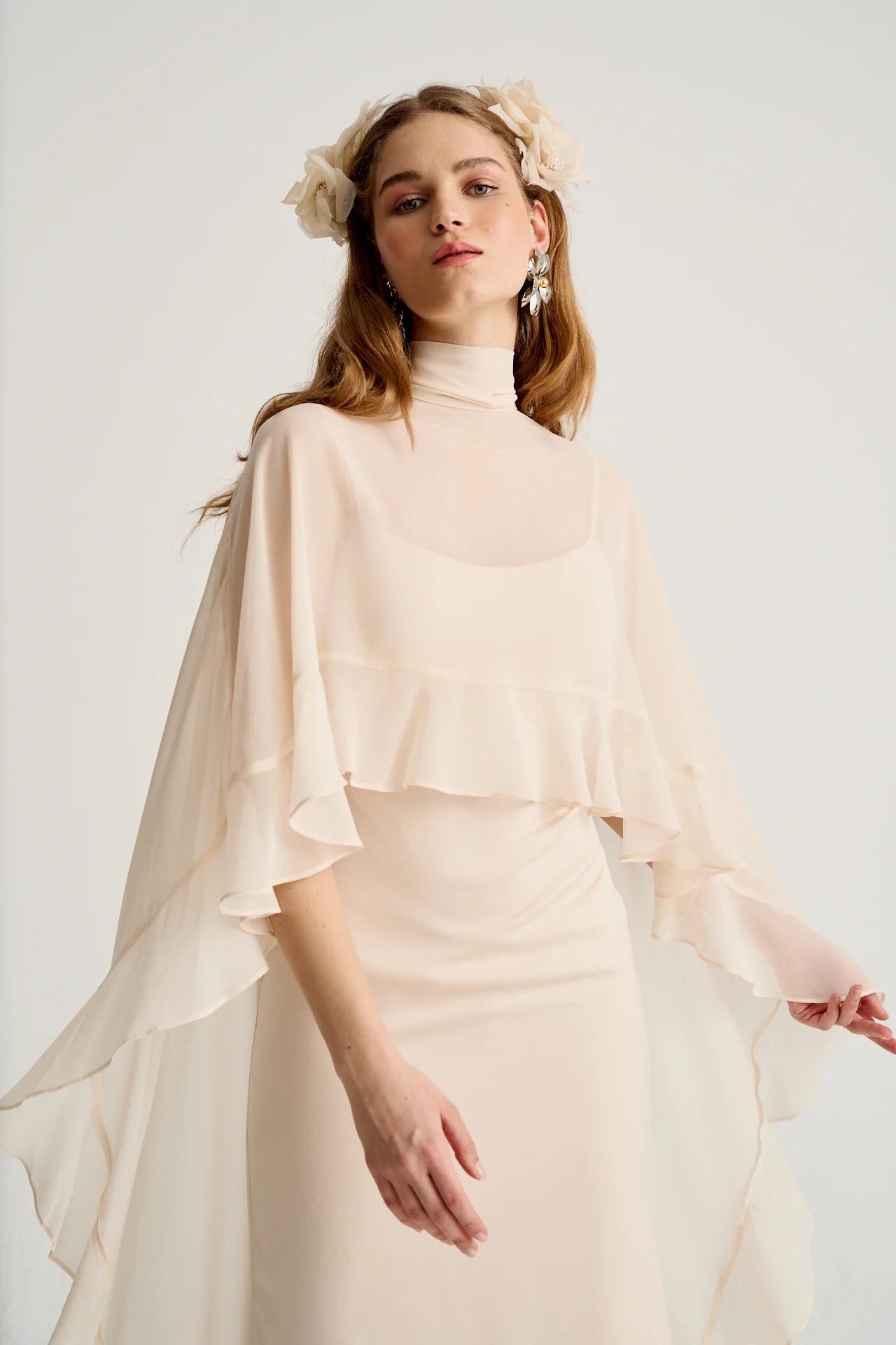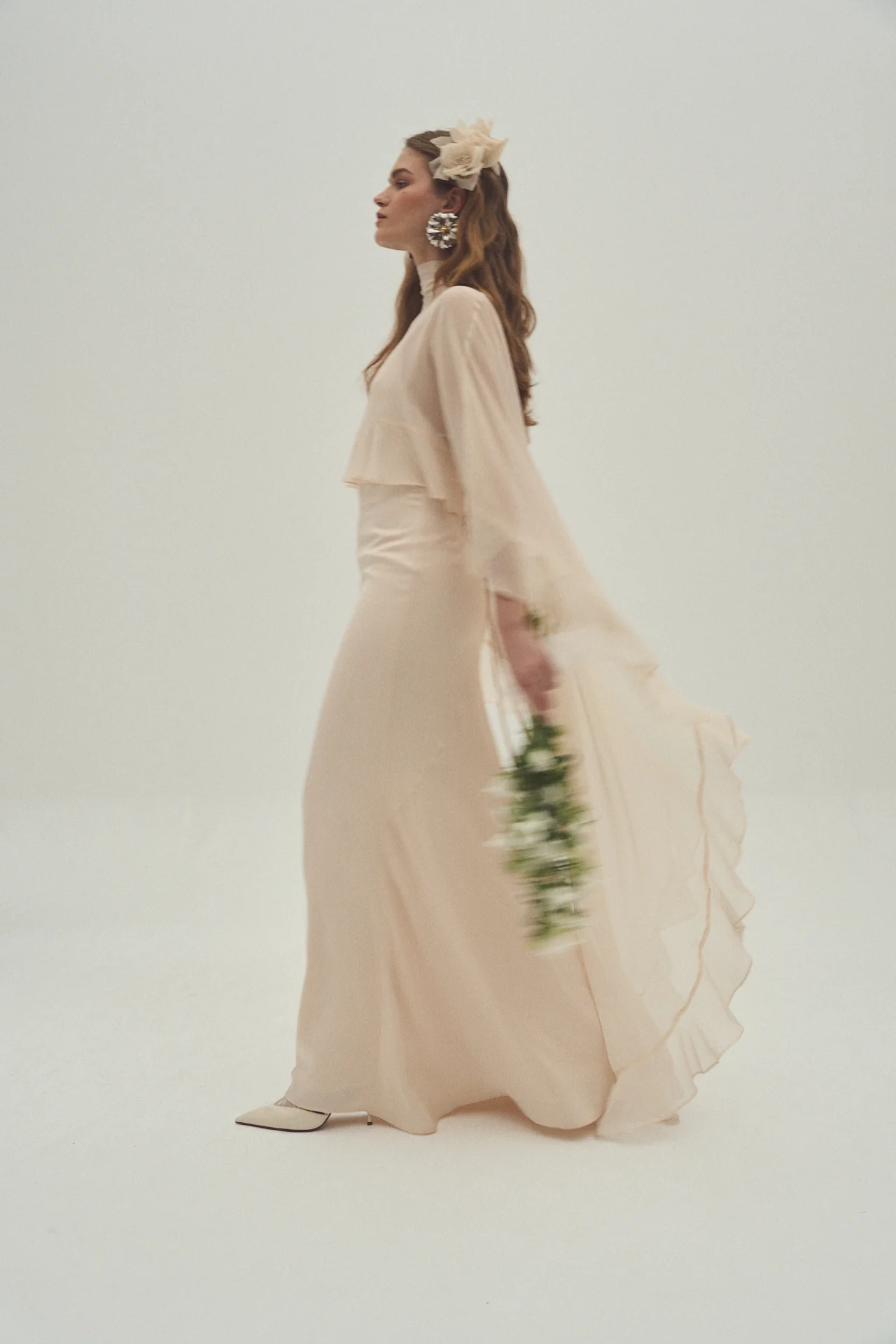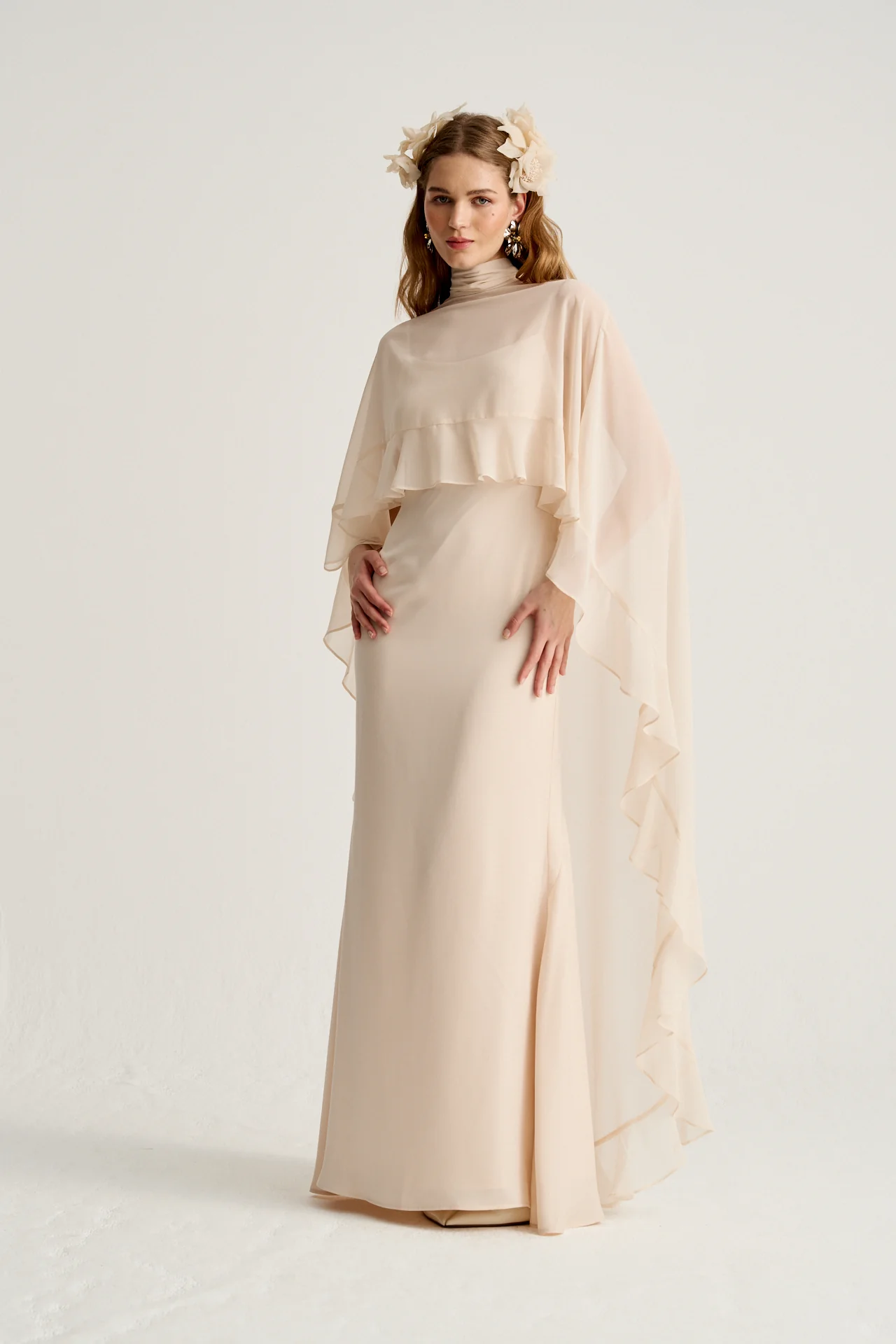 Combinable con nuestra capa Danielle, como se muestra en las im谩genes, el conjunto adquiere un aire de glamour y sofisticaci贸n, ideal para novias que desean un estilo contempor谩neo y refinado. Este vestido es perfecto para bodas civiles, celebraciones al aire libre o ceremonias 铆ntimas.