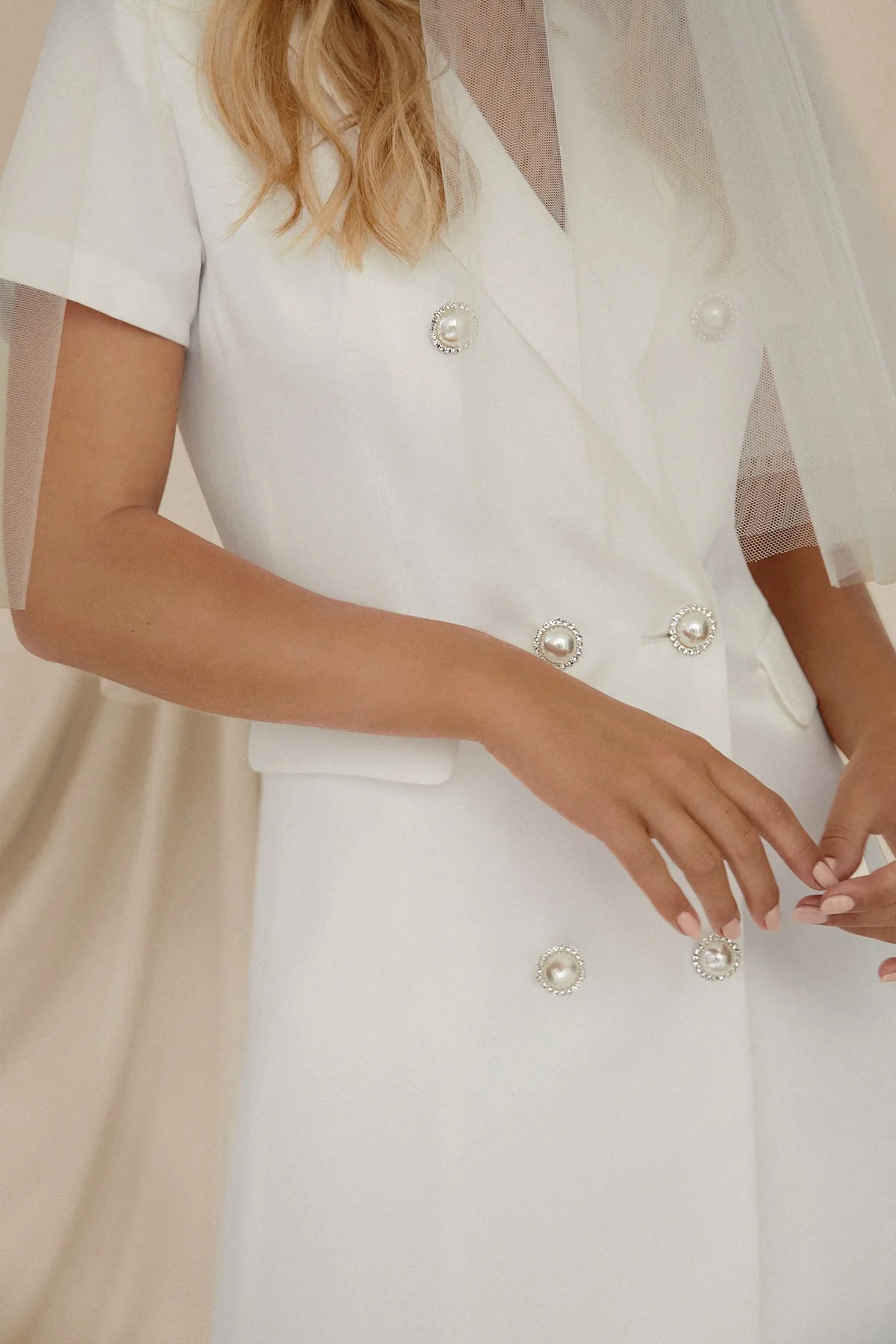 Estilo blazer cruzado con botones joya con perlas y cristalitos.