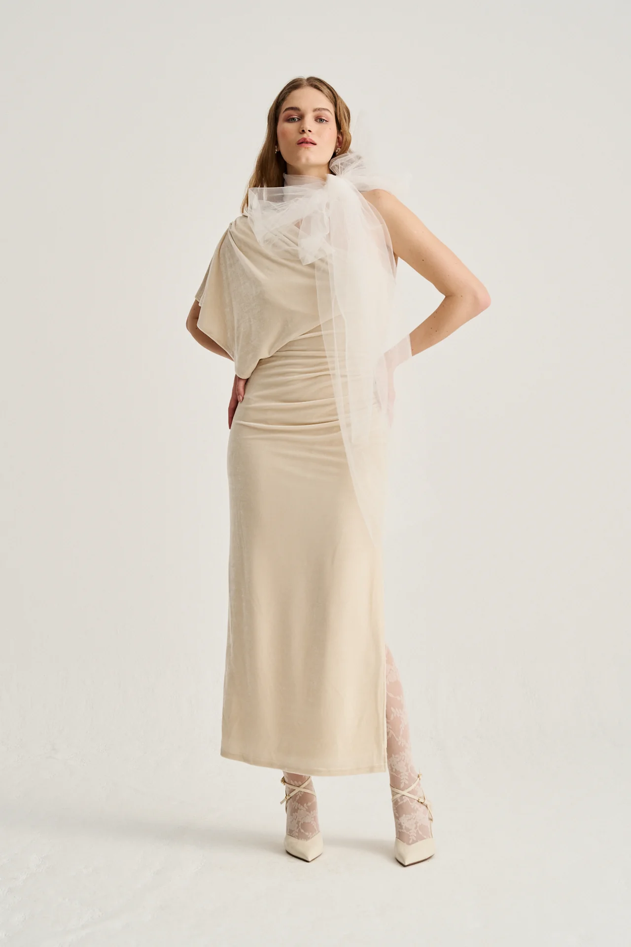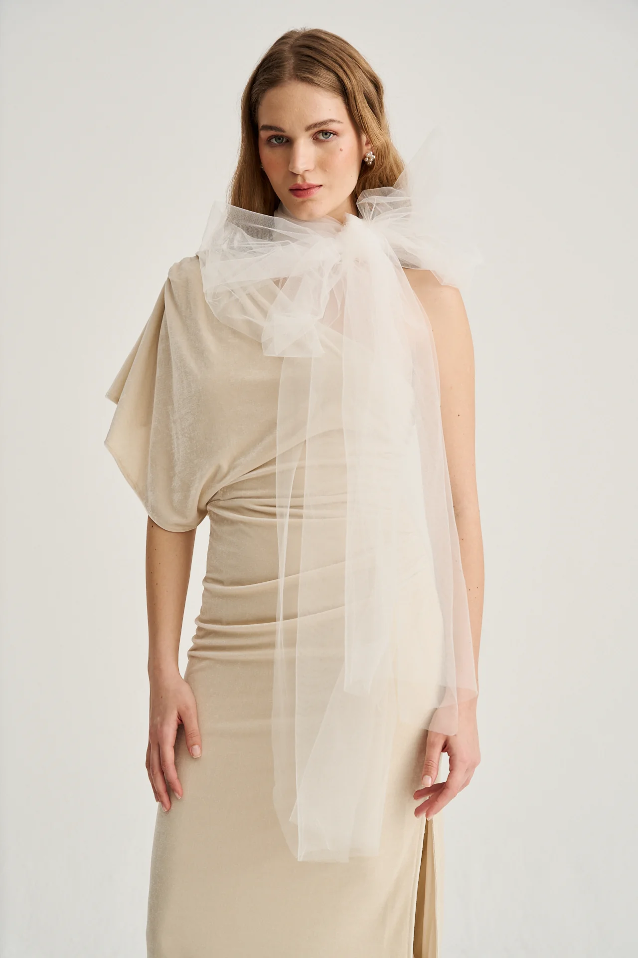 Vestido de novia en terciopelo beige vintage – Sofisticación y elegancia atemporal