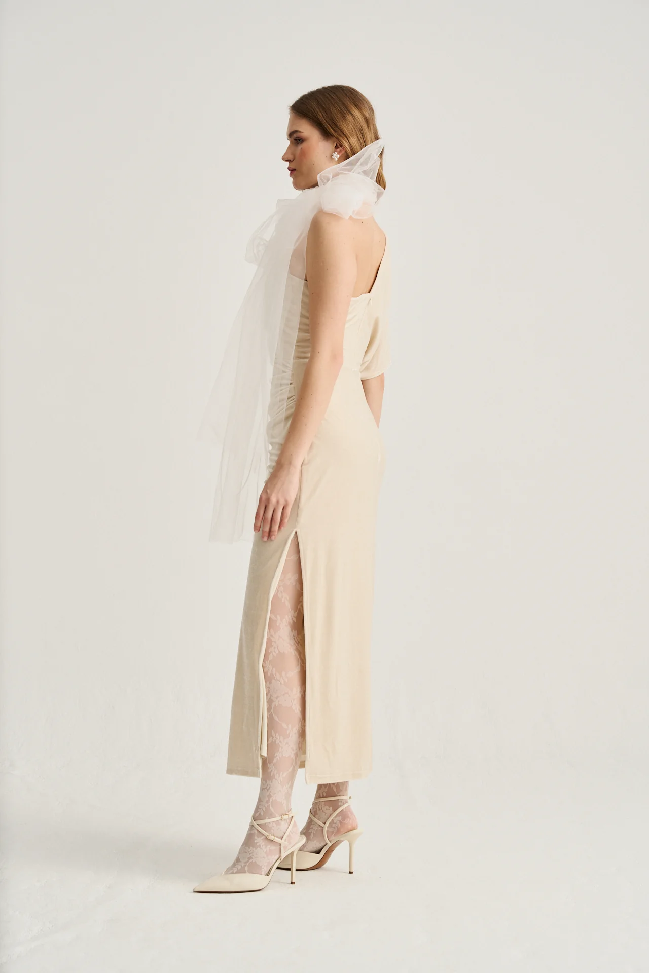 - Confeccionado en terciopelo elástico, un tejido suave y envolvente que se adapta a la silueta sin sacrificar comodidad.