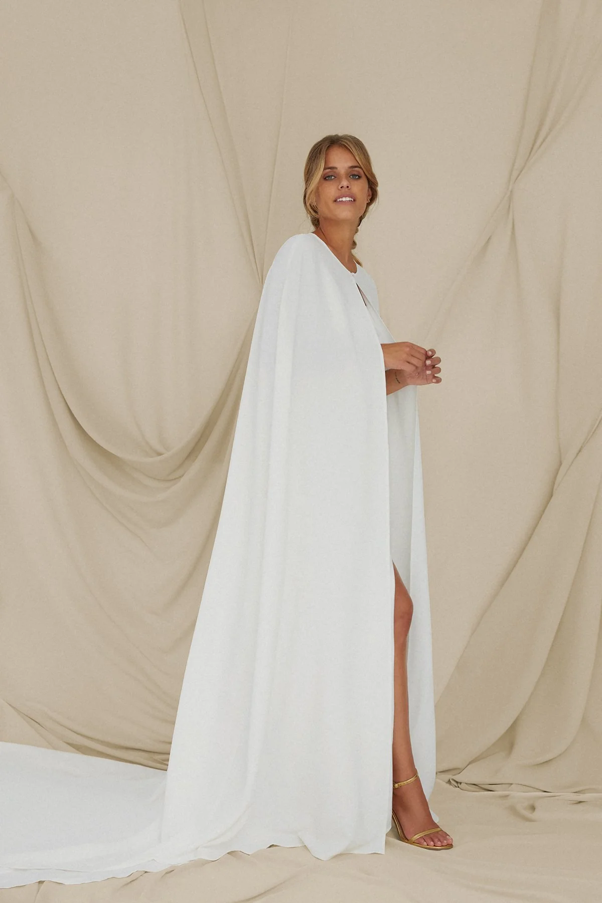 Para darle un toque muy elegante os proponemos lucirlo con capa para la ceremonia o bien para la noche, con nuestra capa Aria realizada en crepe.