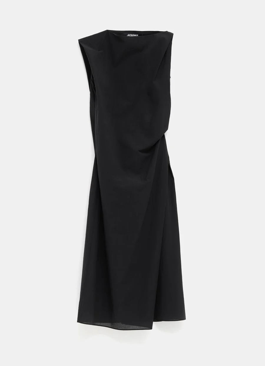 Vestido de Jacquemus con silueta ceñida asimétrica en popelina de algodón transparente con textura. Hombros asimétricos sin mangas, cintura drapeada, cierre de cremallera invisible en el lateral, y largo hasta media pantorrilla. Talla normal, elige tu talla habitual. Tallaje UE para mujer.