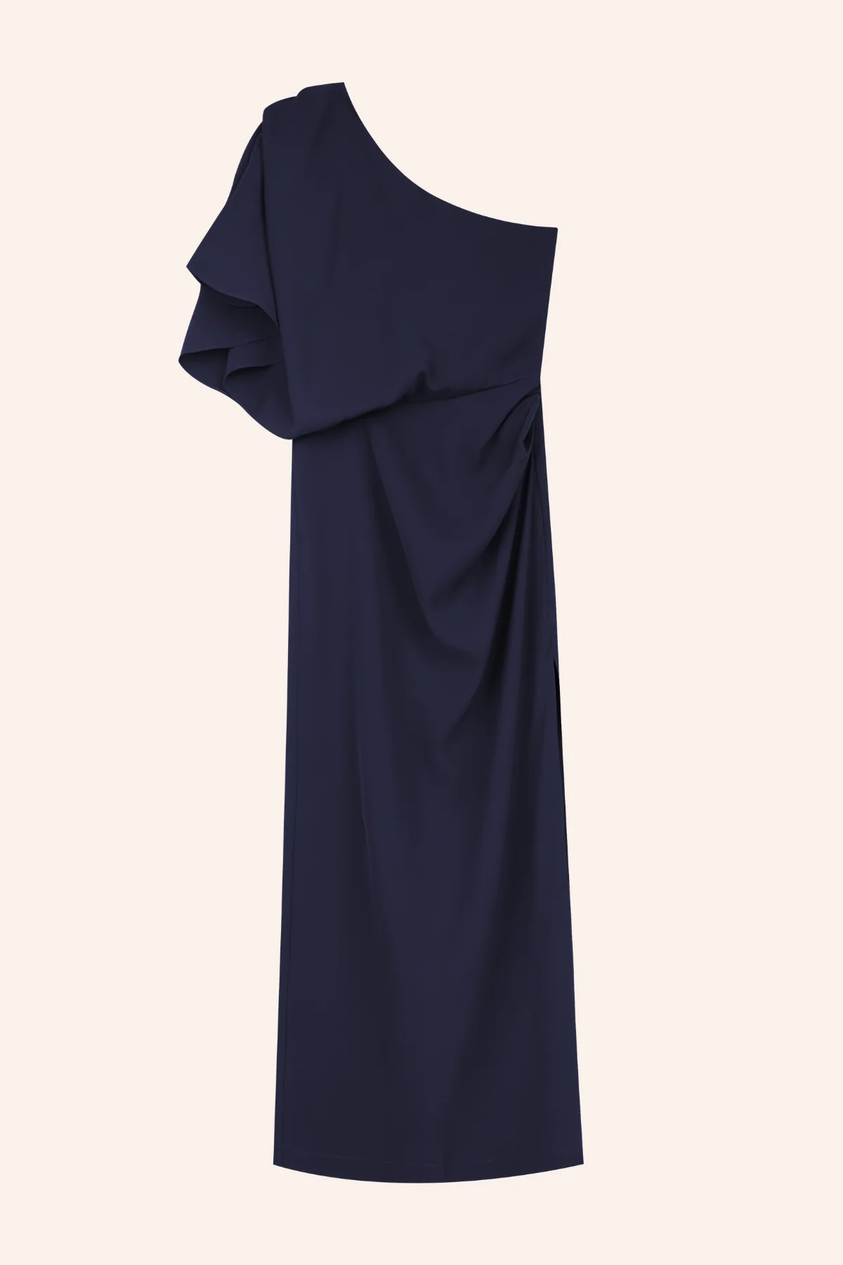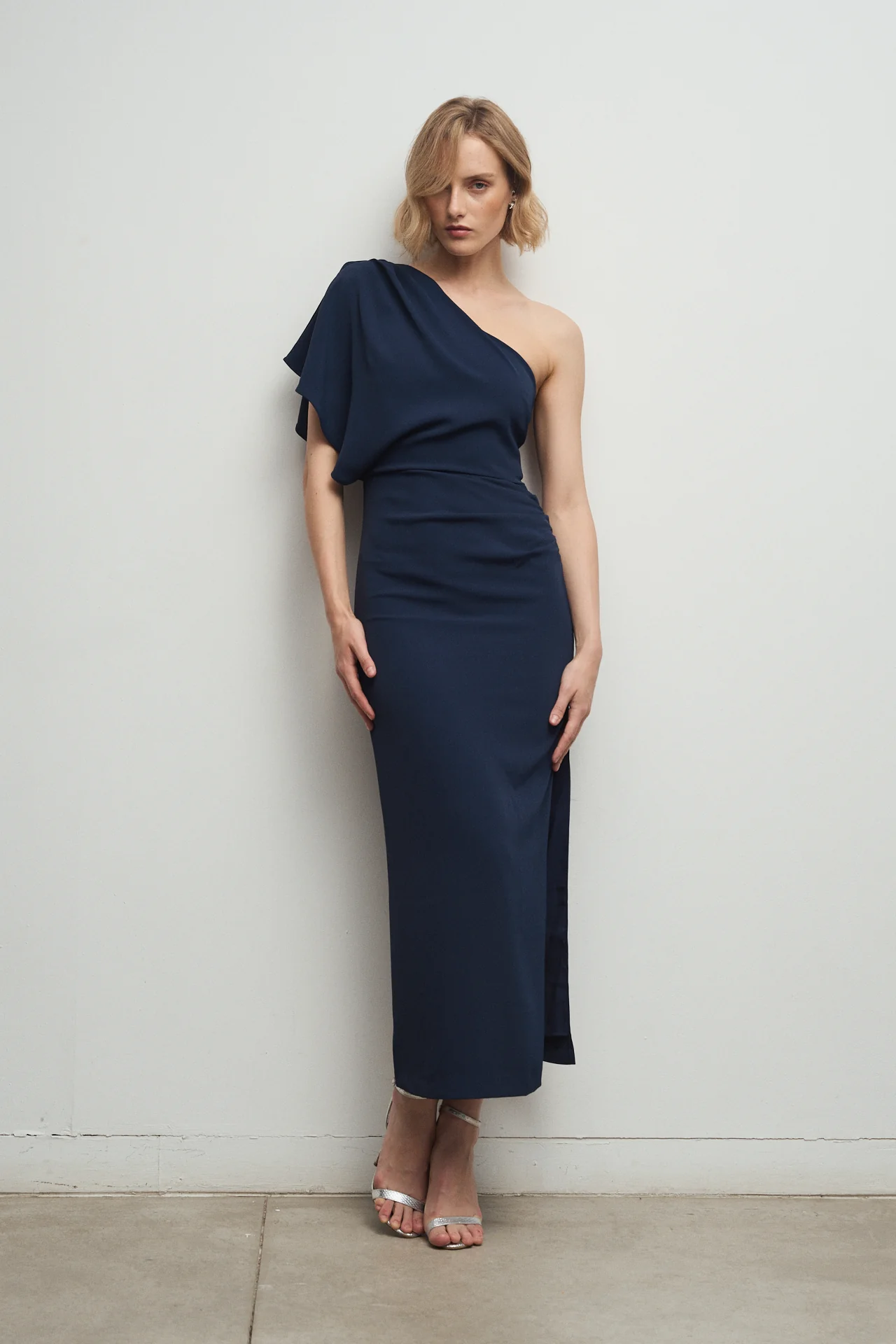 Con un elegante escote asim茅trico y una manga japonesa con vuelo, este dise帽o combina modernidad y clase. La abertura lateral aporta un toque sutilmente sensual, y puedes ajustarla seg煤n tu altura y tac贸n con facilidad, realizando un arreglo sencillo en cualquier modista.