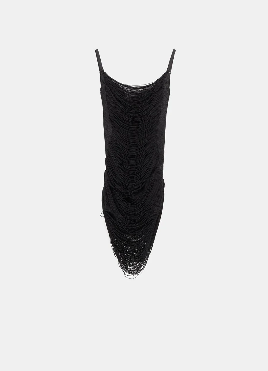Vestido mini de The Attico con tirantes finos, escote recto y cuerpo decorado con flecos horizontales. Corte ajustado. Talla normal, escoge tu talla habitual. Tallaje italiano.
