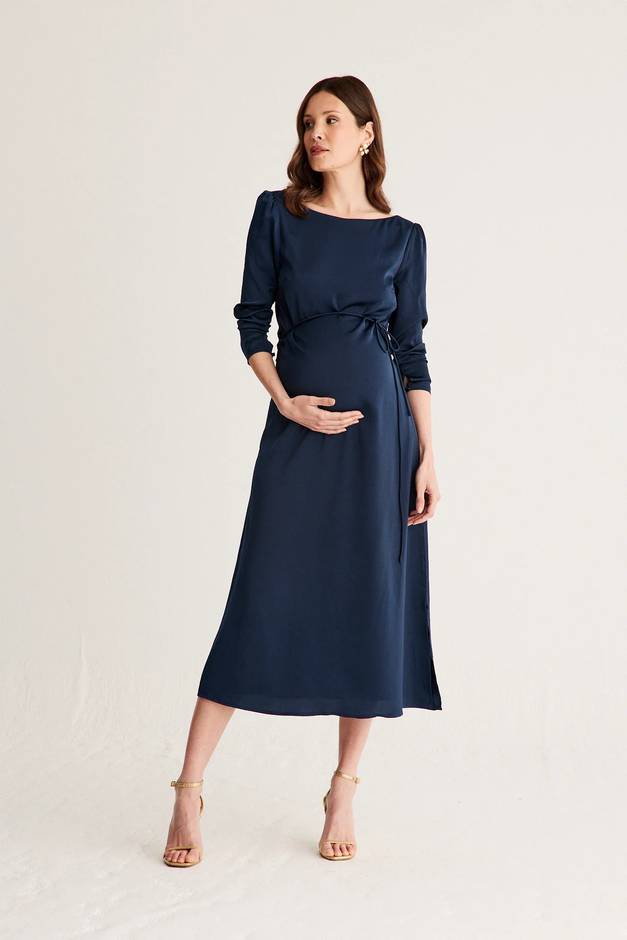Con manga francesa y un cintur贸n a juego confeccionado en el mismo tejido, este vestido de invitada combina comodidad y estilo. El sat茅n de tacto melocot贸n, suave y delicado, se complementa con un forro interior que garantiza un acabado impecable y c贸modo.