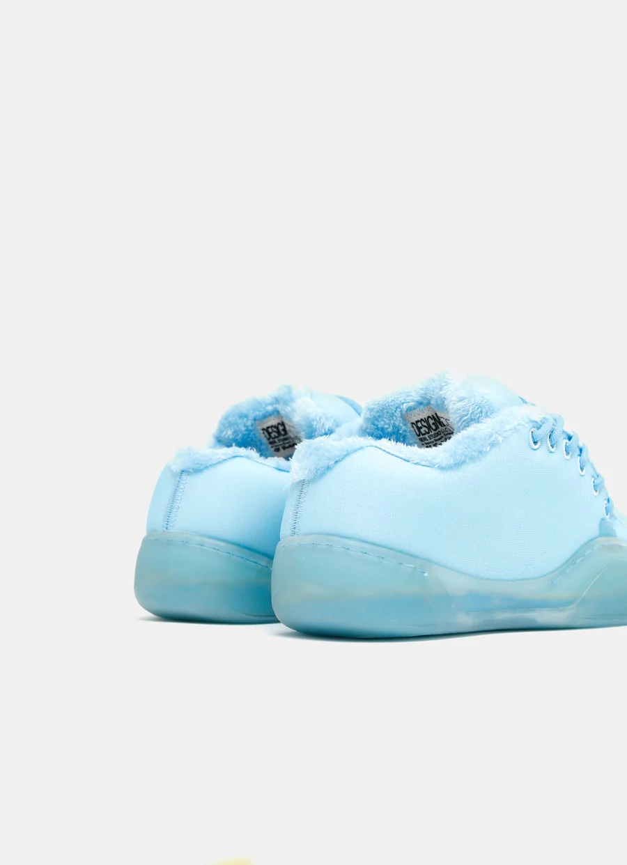 Zapatilla de skate unisex de ERL diseñadas en Venice Beach, California. En nailon azul celeste, con empeine grueso, suela de goma semitransparente con logo, forro efecto pelo y cierre con cordones. Tallan normal, elige tu talla habitual. Tallaje USA para hombre.