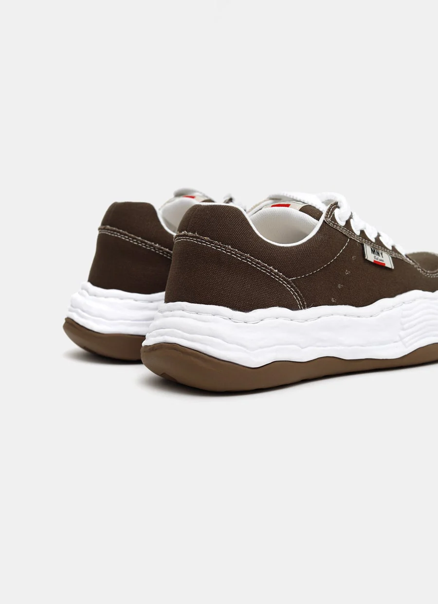 Zapatilla de Maison MIHARA YASUHIRO de caña baja con puntera redonda, tobillo acolchado, costuras en contraste y ajuste con cordones. Suela de voluminosa originalmente diseñada a mano por MIHARA en arcilla. Talla normal, elige tu talla habitual. Tallaje EU para hombre.