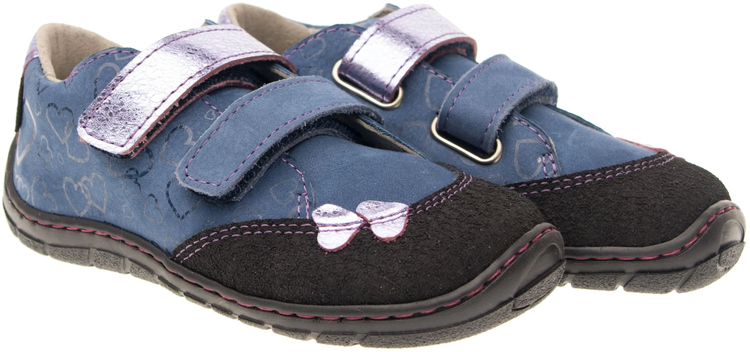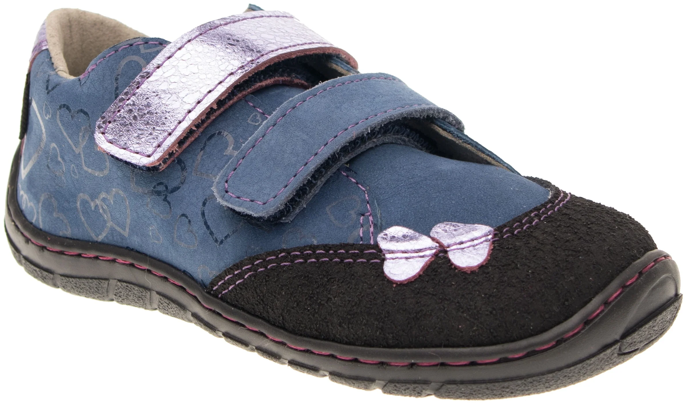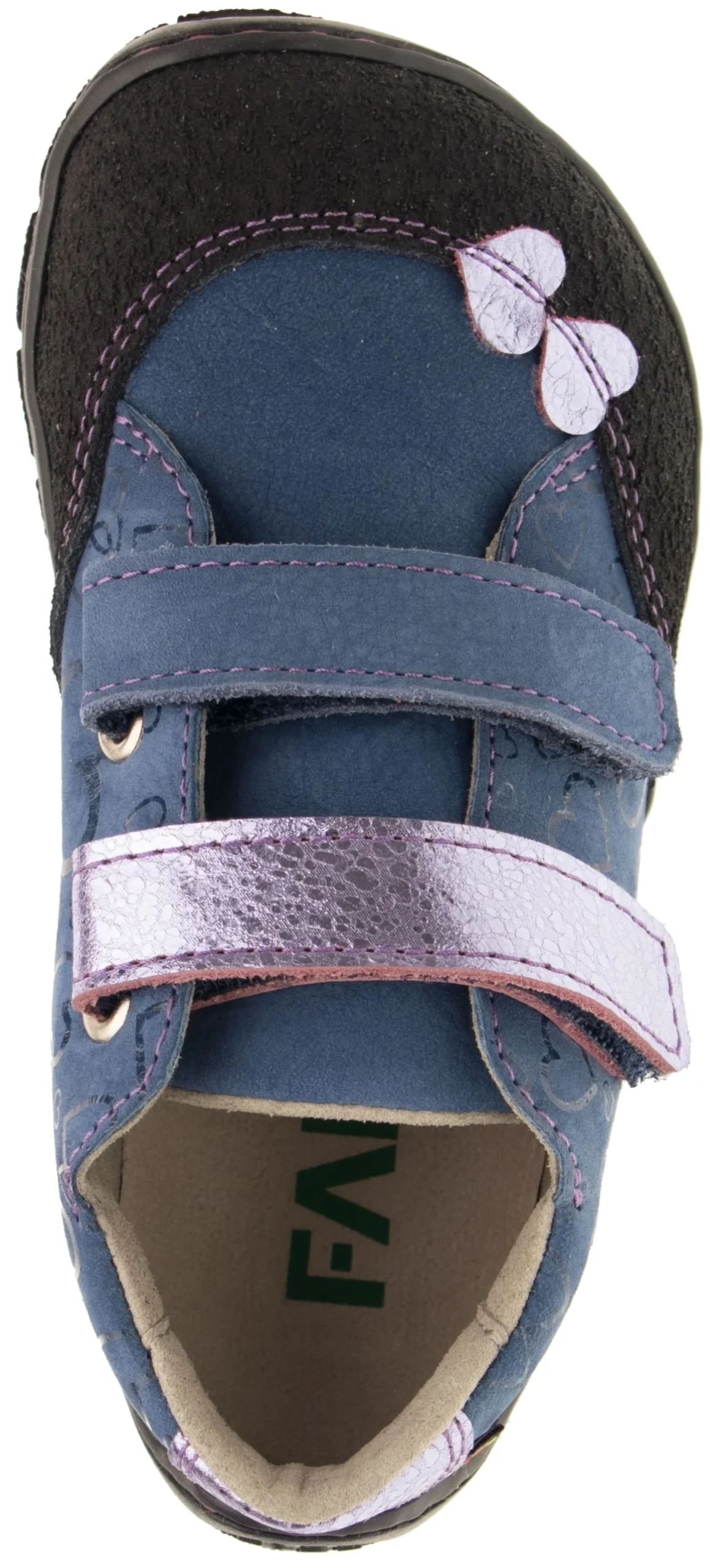 Zapatos para todo el año con cierre de velcro. La plantilla cosida (tachonada) permite una mejor flexión del zapato. Material exterior: piel natural (nobuck). Forro: material textil con excelentes propiedades absorbentes. La suela es de termogoma, que es muy flexible lateralmente, pero también longitudinalmente.