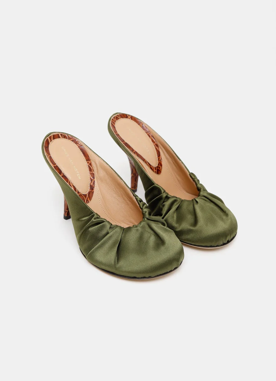 Mules de satén con tacón