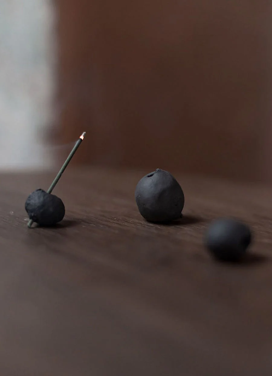 Porta incienso de piedra de basalto